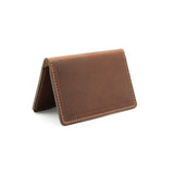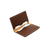 Present your business cards with understated class. The compact, slim design of our business card holder fits neatly into any pocket. This design also functions wonderfully as a super minimalist wallet. The two pockets will hold the cards you need and a few folded bills.