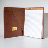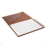 Show up to meetings in style with the elegant all-leather Padfolio. The flap on the left side can hold loose papers and has two slots for business cards. The large slot on the right holds a standard sized notepad. And if you need, an iPad or Android tablet can be securely tucked behind the notepad. Who says you can't have the best of both worlds?