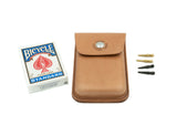 Like everything we do, our goal is to keep the products we make as minimal and clean as possible. The holes in our Travel Cribbage Set are laser cut into the back piece of leather. We wet-form the front piece achieving the 3-Dimensional design of the cribbage board with only two pieces of leather.